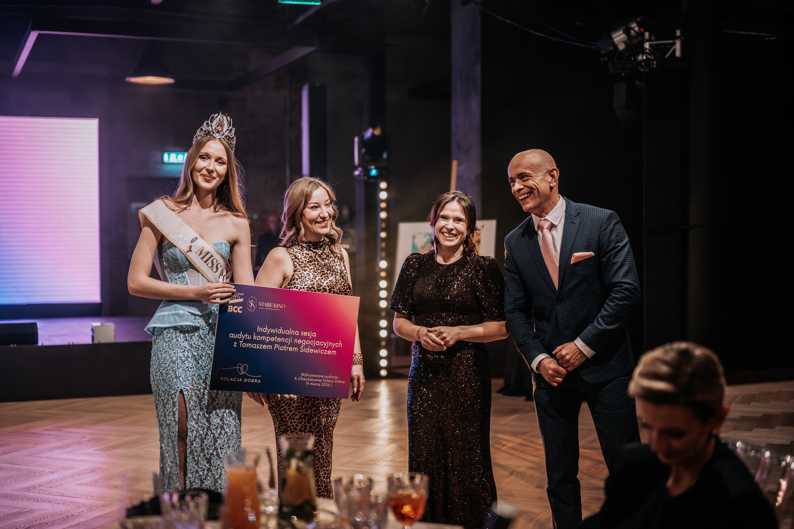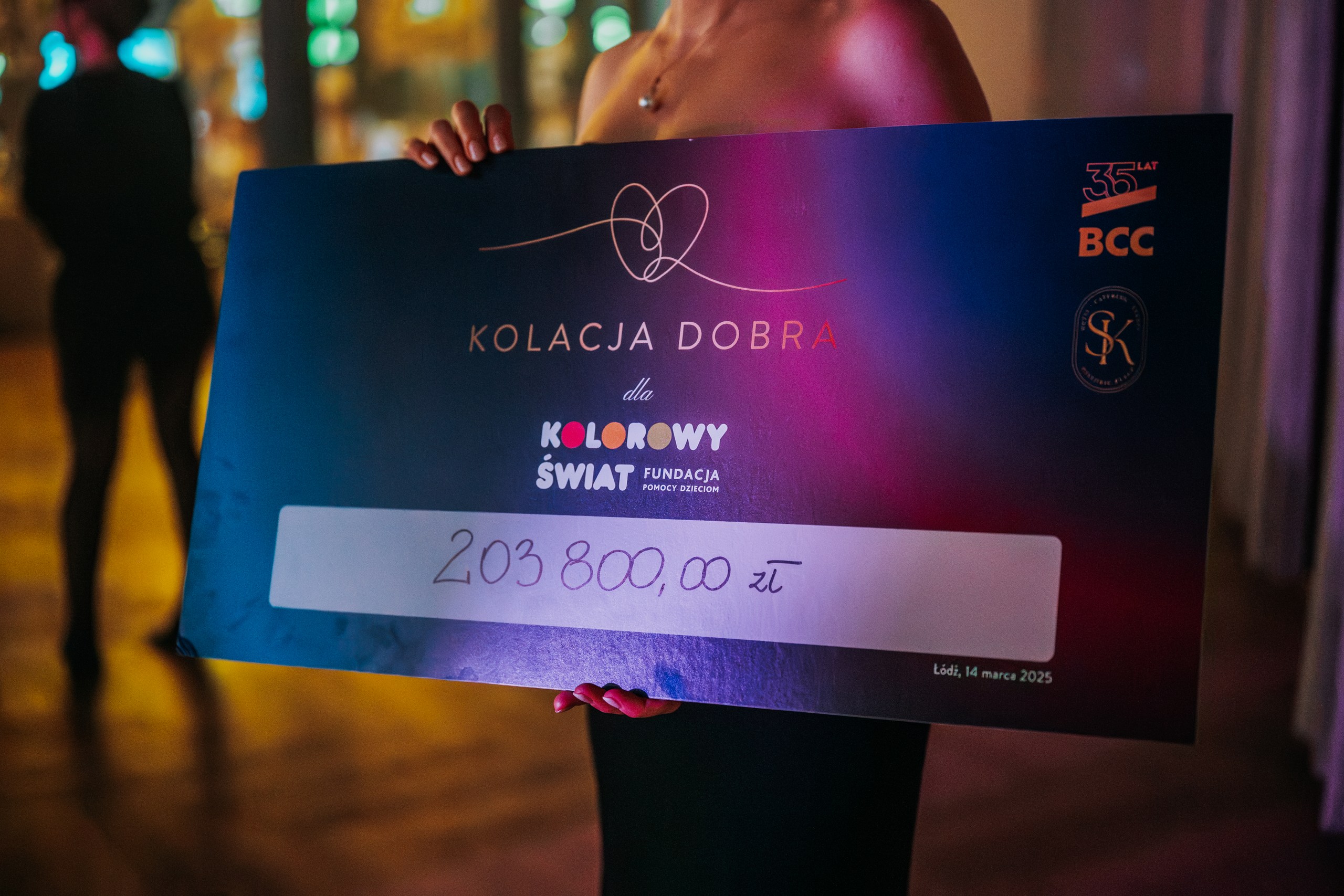 Kulminacyjnym momentem wieczoru były aukcje charytatywne, podczas których – dzięki ogromnemu zaangażowaniu darczyńców i uczestników – udało się zebrać imponującą kwotę 203 800 zł. Środki te zostaną przekazane na wsparcie działań Fundacji Kolorowy Świat, która od lat pomaga dzieciom z niepełnosprawnościami i ich rodzinom.