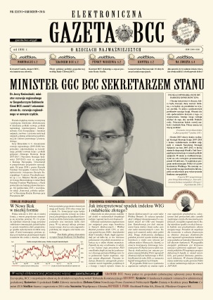 Minister GGC BCC sekretarzem stanu – dr Jerzy Kwieciński, minister rozwoju regionalnego w Gospodarczym Gabinecie Cieni BCC został I wiceministrem ds. rozwoju regionalnego w nowym rządzie. Prof. Stanisław Gomułka przedstawia prognozę gospodarczą – jak interpretować spadek indeksu WIG i osłabienie złotego? A także: opinie o expose, jak walczyć z szarą strefą, działalność CSR członków BCC, książkowe rekomendacje.