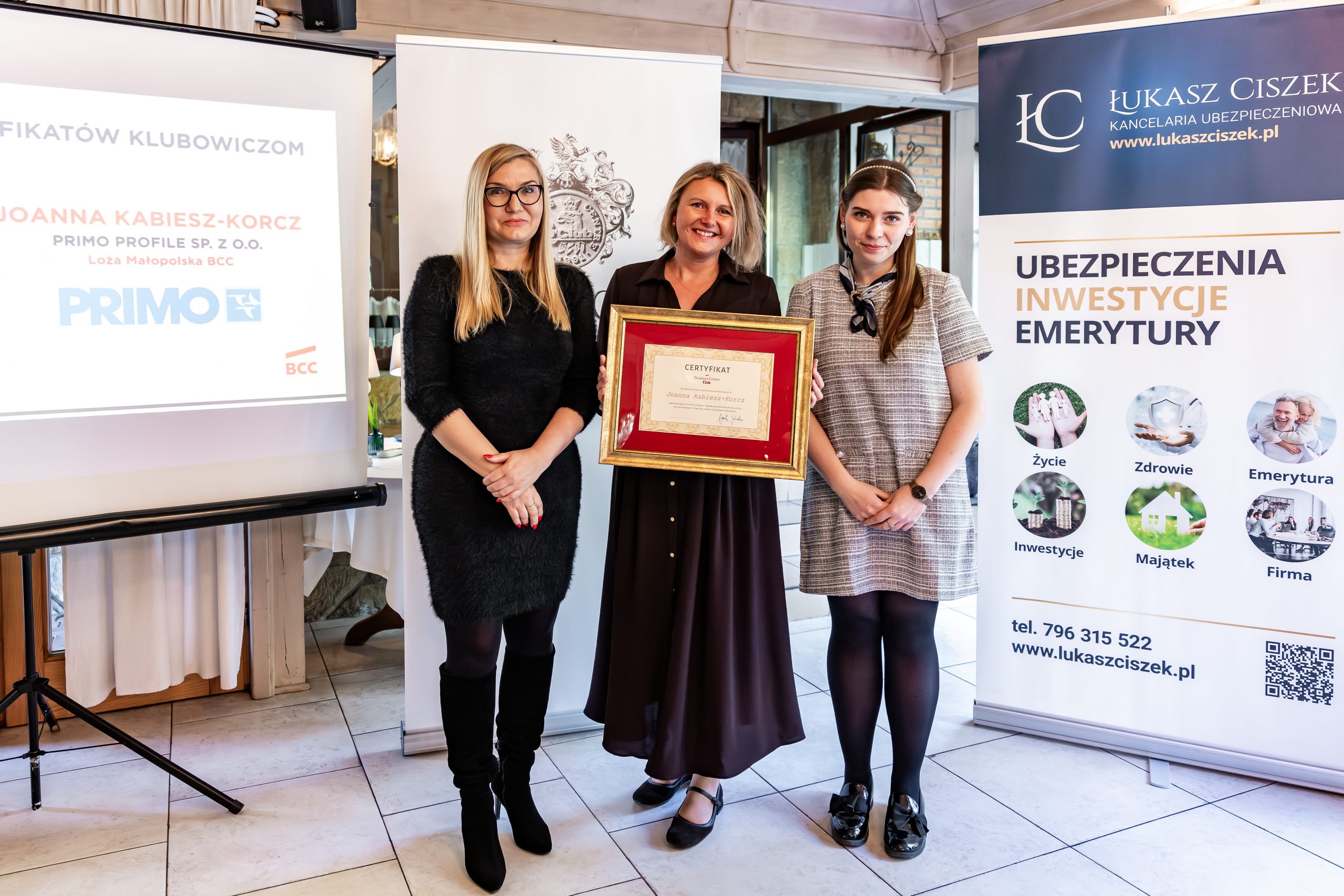 Podczas części oficjalnej wręczone zostały certyfikaty członkowskie dla nowych Klubowiczów BCC Loży Małopolskiej: