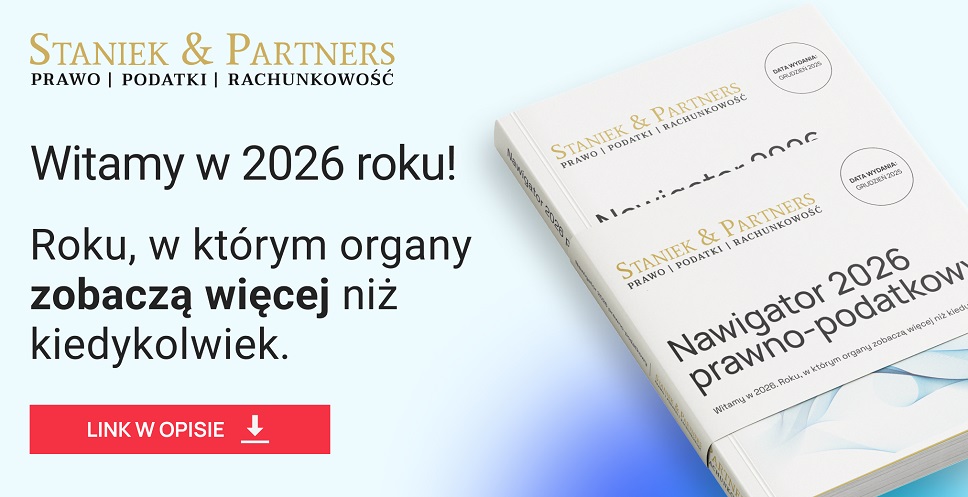 Przygotowaliśmy przewodnik „Nawigator 2026 prawno-podatkowy” – kompendium najważniejszych zmian, które w najbliższych latach wpłyną na bezpieczeństwo prawne i podatkowe biznesu (m.in. KSeF, JPK_CIT, podatek minimalny, zmiany w podatku od nieruchomości, jawność wynagrodzeń, NIS2, AI Act, ESG, sygnaliści).