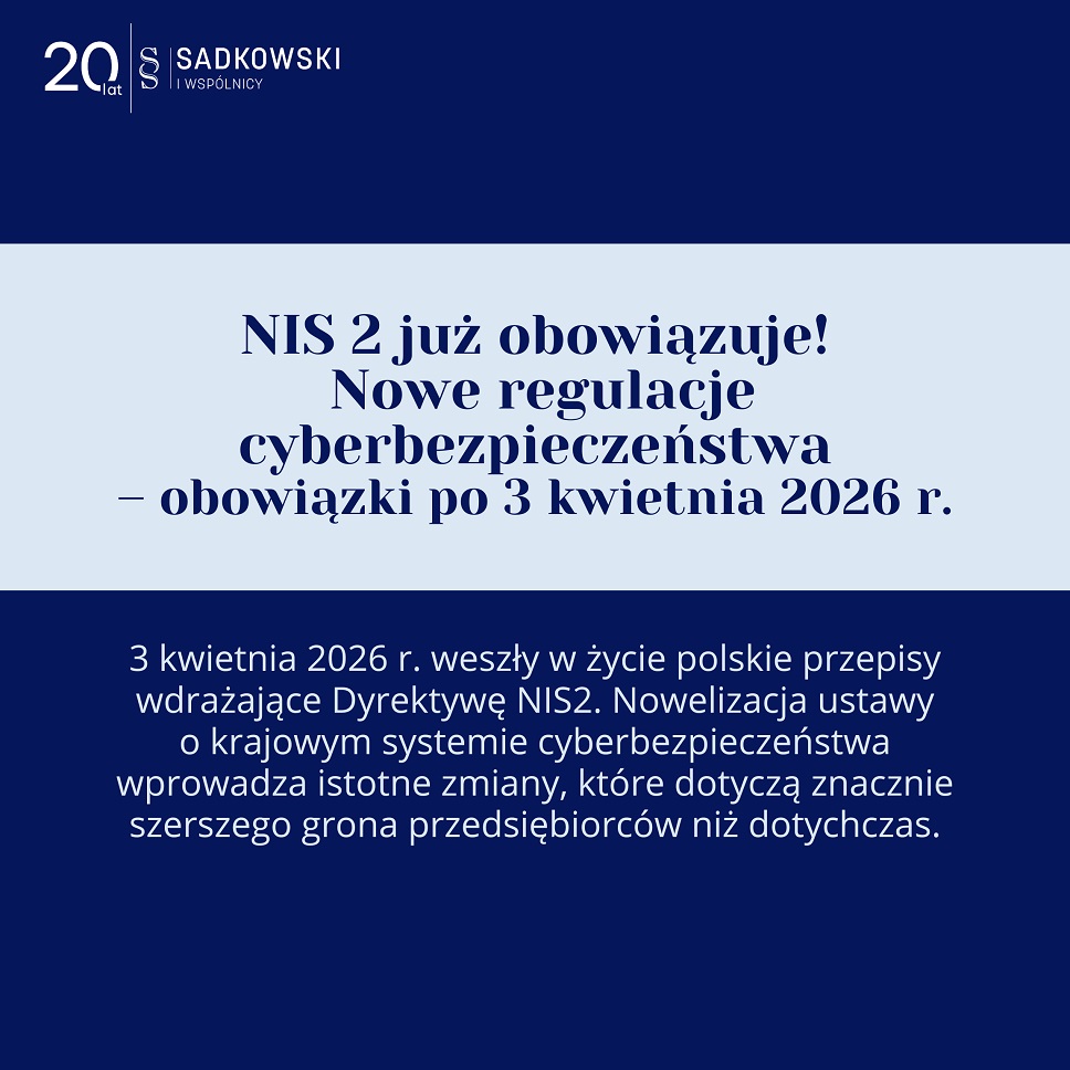 Członek BCC, Kancelaria Sadkowski i Wspólnicy, przypomina klubowym kolegom, że nowe przepisy wdrażające dyrektywę NIS 2 znacząco zmieniają zasady gry w obszarze cyberbezpieczeństwa. To ważny moment – od teraz to przedsiębiorcy sami muszą ustalić, czy podlegają regulacjom jako podmiot kluczowy lub ważny i dokonać odpowiedniego zgłoszenia.