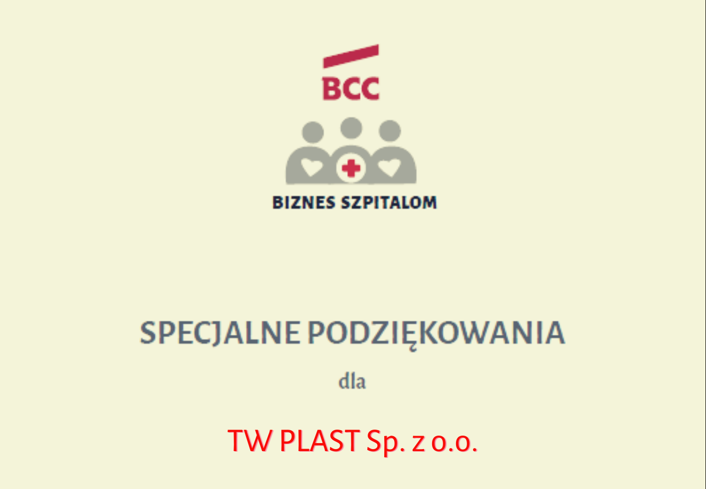 Business Centre Club dziękuje firmie TW PLAST p. z o.o. za aktywne włączenie się do akcji BCC – Biznes szpitalom i wsparcie jednego z warszawskich szpitali dużą partią, produkowanych przez firmę – medycznych maseczek ochronnych.