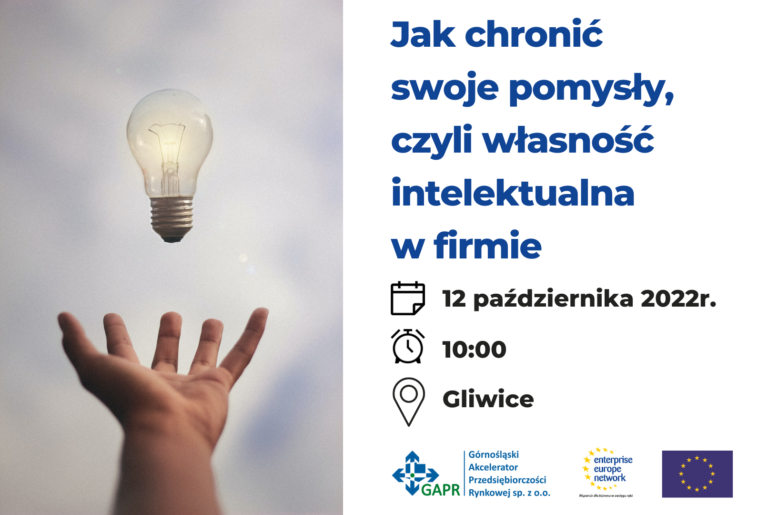 W imieniu firmy członkowskiej Business Centre Cleb z Loży Katowickiej – Ośrodek Enterprise Europe Network działający przy Górnośląskim Akceleratorze Przedsiębiorczości Rynkowej sp. z o.o. zapraszamy do udziału w bezpłatnych warsztatach “Jak chronić swoje pomysły, czyli własność intelektualna w firmie”, które odbędą się stacjonarnie 12 października w Arenie Gliwice.